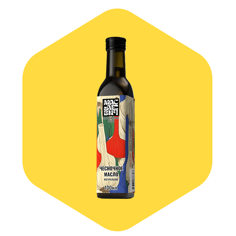 Состав: Растительное масло холодного отжима, настоянное на свежем чесноке. Без добавок, без ароматизаторов.
